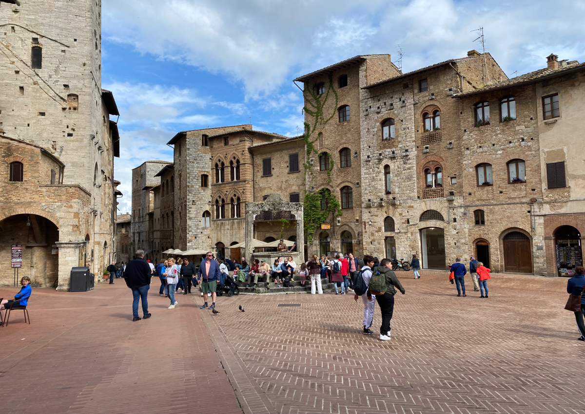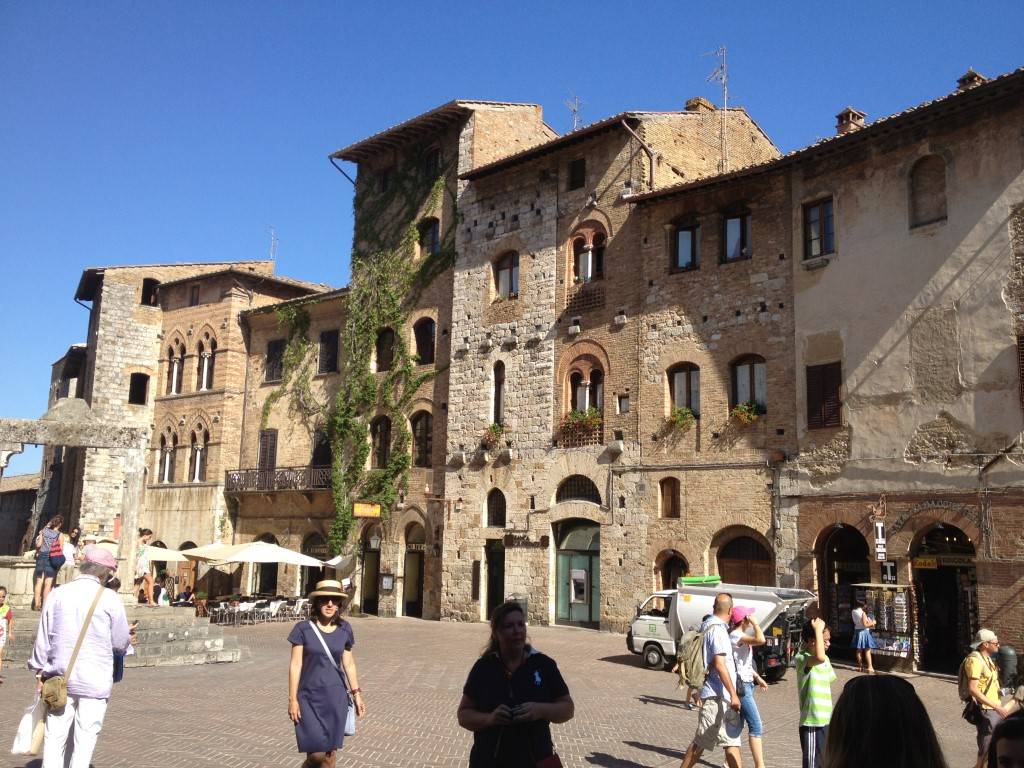 San Gimignano manapság csak a turisták hangjától zajos, a városkát ugyanis egyre kevesebben lakják de annál nagyobb a tömeg napközben. Bár olyan itt, mintha visszacsöppentünk volna fél évezredet a múltba, rengeteg üzlet csábítja vásárlásra és kostolásra az ide látogatókat.