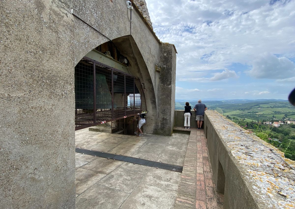 A legtöbben a 2-es parkoló felöl lépnek be, ez a Porta san Giovanni vagyis Szent János kapu. Körbe is lehet egyébként sétálni a 13 századi fal mentén kívülről a várost ami innen indul, kb 2,1 km. A Medici tornyok mellett itt van a közkút is ahova lejártak a városlakók vízért - a Porta delle Fonti mellett. A főutcán felfelé beérünk a központba: három egybekapcsolódó tér adja a város magját, a Piazza del Duomo, a Piazza delle Erbe és a Piazza della Cisterna, a templom és a tornyok is ezek körül vannak. A Piazza del Duomo-n épült fel a régi városháza 1239-ben, tornya 51 méter magas. Az új Városháza, a Palazzo del Poppolo, 1300 körül épült, 54 méter magas toronnyal, melynek neve Torre Grossa és izgalmas felmenni a tetejére és körbetekinteni a gyönyörű és érdekes városkán és az azt körülvevő csodálatos toszkán tájon.