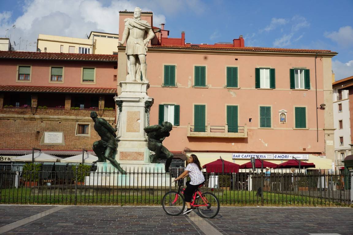 Monumento dei 4 Mori vagyis a 4 Mór emlékműve a kikötő bejáratával szemben található.