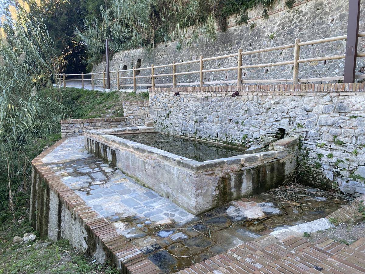 A valóságban a fürdők, melyeket valószínűleg már a rómaiak is használtak, már a 12. század előtt is ismertek voltak. Az első létesítményeket Federico di Montefeltro építette 1311-ben és mind a Medici, mind a Lotharingiai család végzett felújítási és fejlesztési munkálatokat. Még 1870-ben is Poggi építész, a firenzei Piazzale Michelangelo híres építésze új projekteken dolgozott a létesítmény modernizálása érdekében. A fürdő ma két forrásból áll: az egyik, a "Mathelda", amelyet a szakértők terápiás tulajdonságai miatt a félsziget egyik legjobb forrásának tartanak, 36°C-os hőmérsékleten folyik. A másik, "San Leopoldo" nevű forrást hidroponikus terápiákra használják.