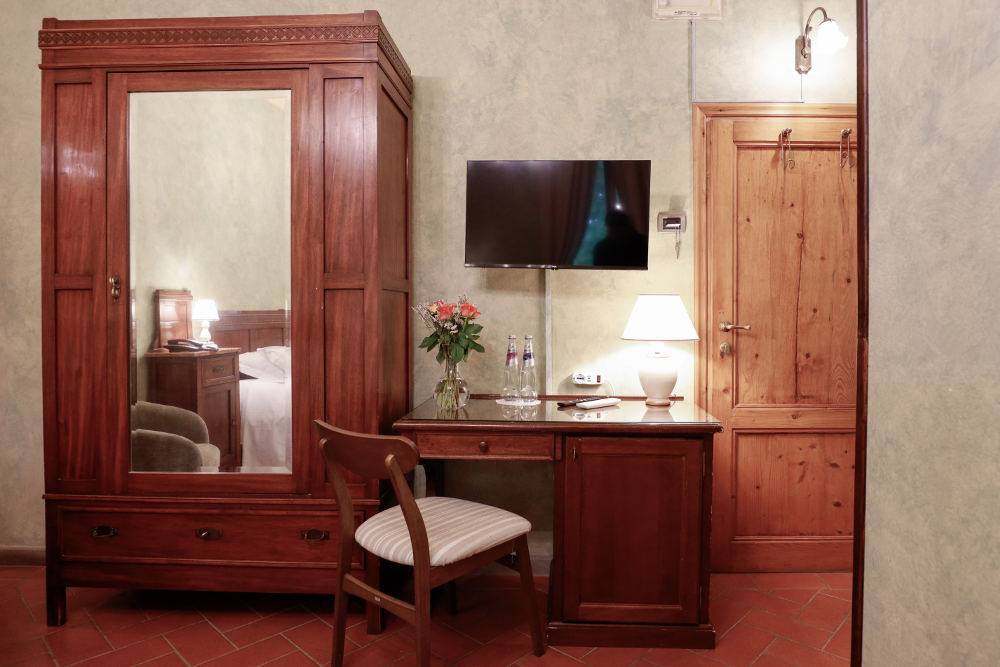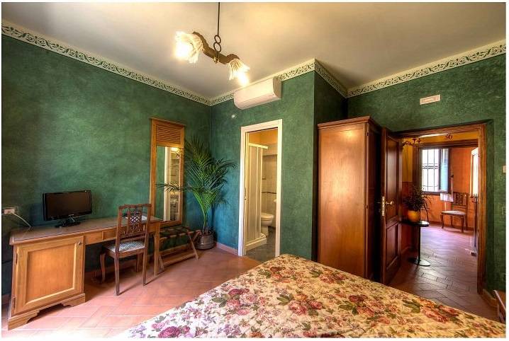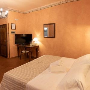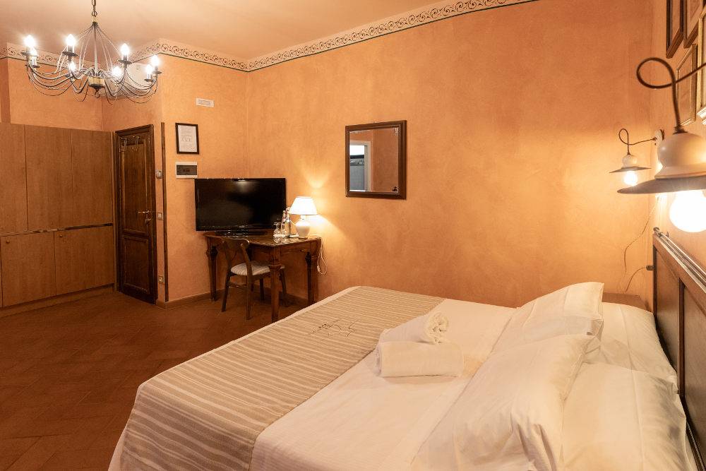 Az épületben kb 20 szoba van, mindegyik saját fürdőszobával, többnyire 2 főse, némelyik pótágyazható de nincsen már 4 fős szoba. A berendezés toszkán stílusú, mindegyikben van légkondicionáló és fűtés, Tv külföldi adókkal és a fürdőszoba nagyon szép, márvány- vagy kőpulttal, zuhanyfülkével. A standard szoba 14-16 m2-es és persze van sampon, szappan, tusfürdő és egy kisüveg ásványvíz. A classic szoba 2 m2-el nagyobb és itt ezeken kívül dupla párna is jár a vendégeknek. A superior szobák 20-22 négyzetméteresek és fürdőköppeny, papucs, testápoló és egy üveg bor is be van készítve.