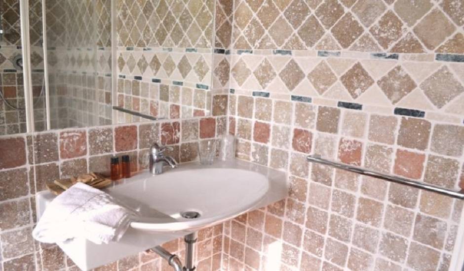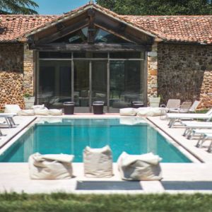 Bungalow: az étterem melletti részen található egymás mellett sorban a 10 faház, mindegyiknek saját terasza és kertrésze van, kavicsos parkolóval. Mindegyikben van egy nappali rész dívánnyal konyhapulttal és étkezőasztallal, innen nyílik a két hálószoba amiből az egyik franciaágyas a másikban két külön ágy van ( de kérésre összetolhatók). A berendezés modern stílusú, a konyhában de a hálókban akár baldachinos ágy is előfordul. A fürdőszobában van egy zuhanykabin, wc és bidet, hajszárító, modern, igényes burkolatok. A nappaliban van egy flat tv, van fűtés és a legjobb talán az egészben a veranda ahova ki lehet ülni nyári estéken borozgatni. Ezeket csak egyszer takarítáják a hét végén vagy elutazáskor ( a hotelszobákat naponta ). A levendulabokrok illata betölti a levegőt, nekünk szeptemberben a tetőről lógó szőlőfürtök tetszettek a legjobban. Minden évben újítanak, pár éve minden ágyra memory foam matracokat vettek, aztán Nespresso kávégépeket amihez adnak is kávékapszulát érkezéskor. Aztán elkészült a külön medence a bungalow vendégeinek ( sekélyebb oldalán 90 centis mélységgel ) .