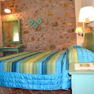 A szobák berendezése rusztikus de mégsem régies, mindegyikben egy adott szín uralkodik, a fürdőszobák mind teljesen újak és modernek, és van hogy látszanak a fedetlen kőfalak. Az apartmanok mindegyikében van Tv a nappaliban és a konyha is jól felszerelt : nagyobb hűtőszekrény mélyhűtő résszel, sütő, mikrohullámú vagy elektromos kisebb sütő, kotyogós kávéfőző, kenyérpirító és mosogatógép is.