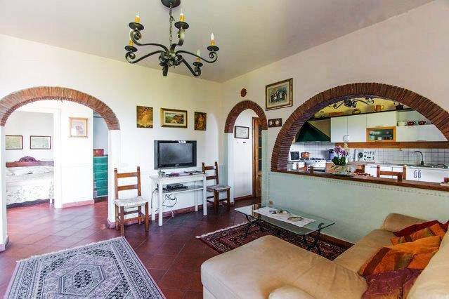 A tengerhez is közeli, panorámás pozicióban lévő villa 4 hálóval max 10 főre - a szapan alaku medence és a kilátás mellett a ház felszereltsége is nagyon jó hiszen van légkondi, kandaló, nagy TV és internet wifi. A homokos tengerpart csak 12km de a ház egy erdőben van, csendes környezetben, Pisától északra.
