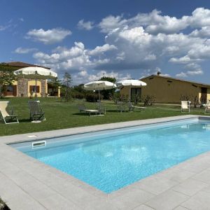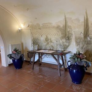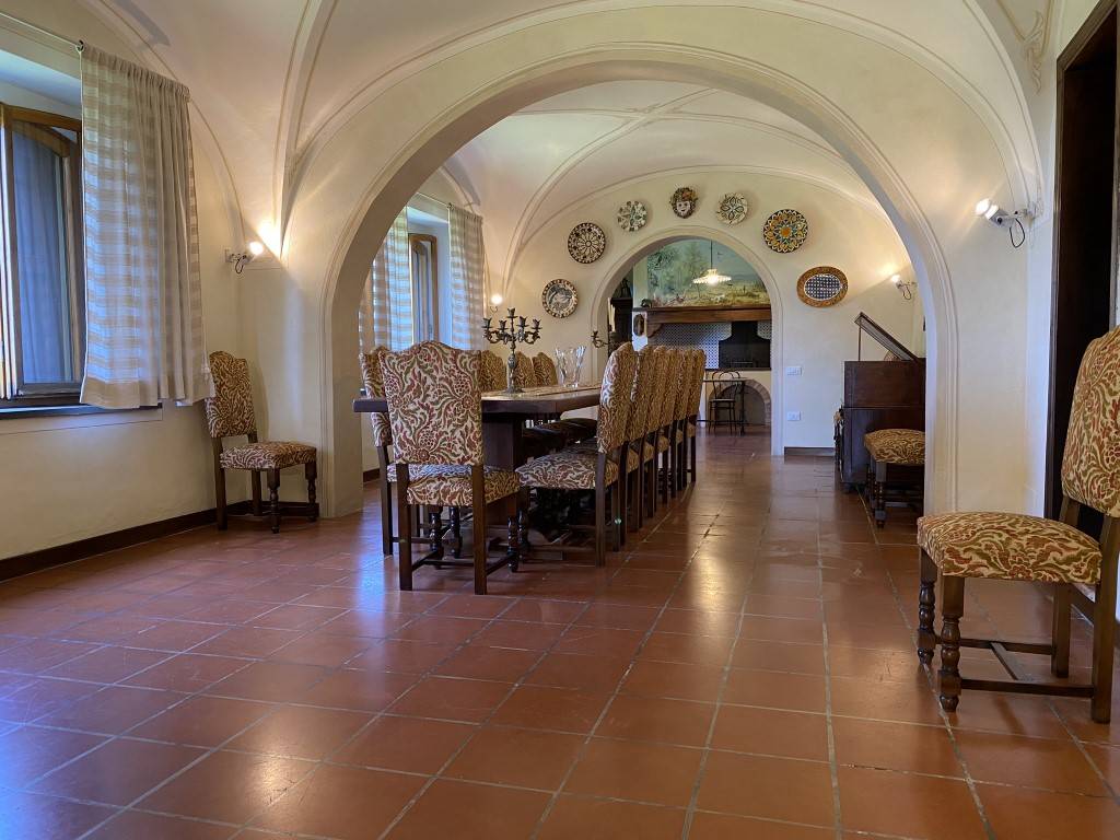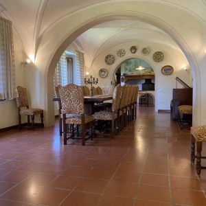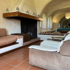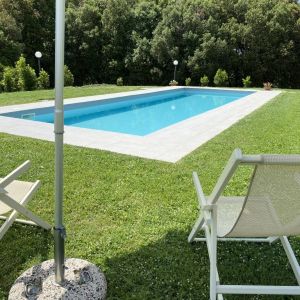Kert: Az épületet egy kb 100 hektáros földterület öleli körbe, melyen erdő, kis tó, pineta (fenyőerdő) is található. A bejárat melleti fedett teraszon elegáns bútorok biztosítják a nyugodt pihenést, de a kertben van grill is és napágyak, napernyők is a medence partján. Eredetileg esküvőkre szánták az épültet hiszen a kertben akár százan is elférnek a szokásos fehér sátor alatt, és van egy kis családi kápolna is a ház mögötti kis dombon.
