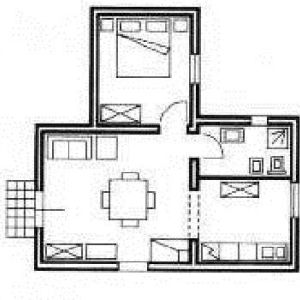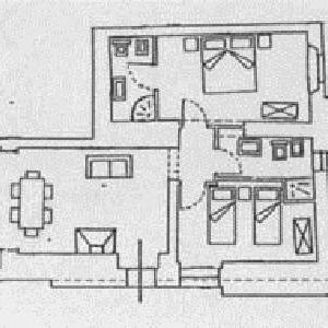A 4-es apartman van mellette, ez kb. 70m2-es: itt is a nappaliba léphetünk be, ahol a kihúzható dívánnyal szemben egy szép kandalló van. Innen léphetünk be az étezőbe és onnan a konyhába. A nappaliból nyílik az egyik hálószoba, és egy kis folyosó, ahonnan a másik hálóba és a fürdőszobába juthatunk.