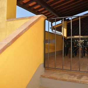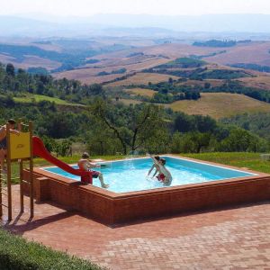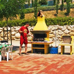 Kert: Van nagy parkoló ahol az autókat lehet hagyni (ingyen). A parkoló melletti placcon egy nagy játszóteret rendeztek be és mellette van több kinti grill és árnyékot nyújtó tető is asztalokkal. A medence nagy és szappan alakú, az egyik oldalán ki lehet feküdni vagy belesétálni mert olyan mint a tengerpart. A nagy medence 32x12 méteres (!) , mélysége kb 150 cm a mély oldalon. A kerek kismedence kb 50 cm mély, mellette napernyők és napágyak vannak kitéve nyáron. A lovarda a medence alatti részen van, minden nap nyitva- lehet kisebb lovon zárt területen tanulni a lovaglást vagy ki is lehet lovagolni az erdőben lévő utakra. Körben kb 2ezer olajfa biztosítja az extraszűz olívaolajat sajt használatra de meg is vásárolhatjátok.