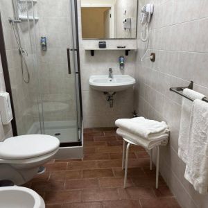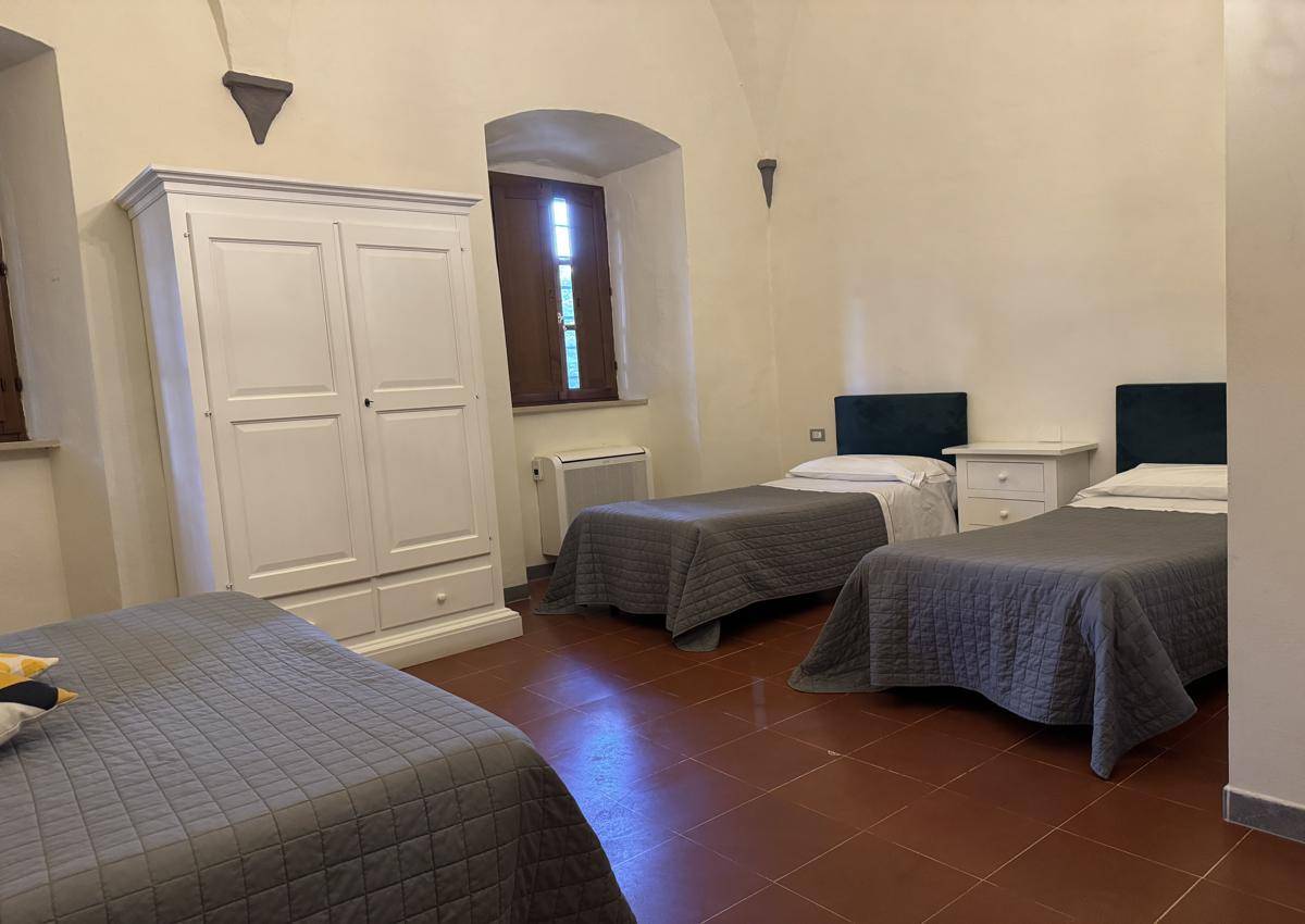 A másik szárnyban, a ferences rendi szerzetesek épületrészében lent és az emeleten vannak azok a szobák amiket most újítottak fel ( comfort), történelmi hangulatuak de itt is mindegyiknek saját fürdője van és légkondi, vízforraló és kis hűtő is. A mögötte lévő kertet 2025-ben parkosították, átalakították és az olajfák mellett egy napozó rész is van meg 2 jacuzzi is - ezt használhatják a szuperior szobák vendégei ingyen de a többi vendég is 12 euroért (per fő). Ez a kert 11-20 óra között van nyitva, kauciot kérnek a belépőkártyáért ( lásd lent). Aki 'igazi medencét' szeretne az ingyen használhatja a kemping medencéjét viszont ehhez 300 métert kell sétálnia.