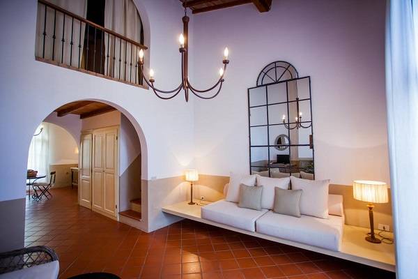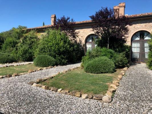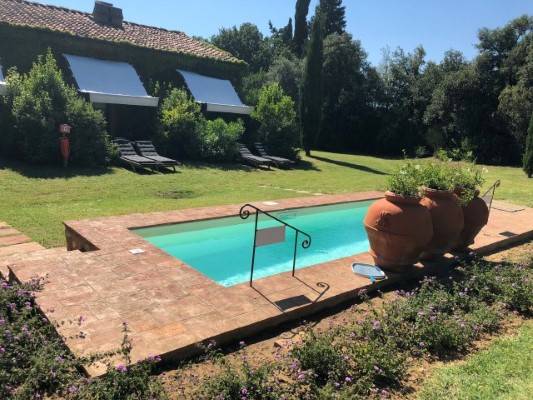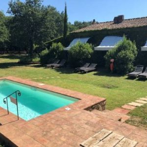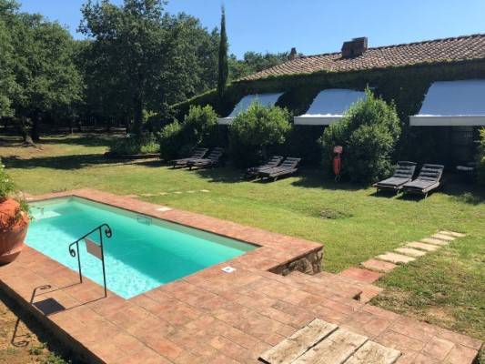 A főépület egy exclusive hotel medencével ami nincsen fent a weboldalamon mert kicsit magasak az árai ( napi 300 euronál kezdődik a szobák ára.) Itt van azonban a recepcio ahol mindenkit beregisztrálnak és innen vezetnek fel a régi vagy ebben az esetben az új házhoz. Itt lehet biciklit kölcsönözni és információt is kapni a környékkel kapcsolatban. Mellesleg a gazdaság területén tipikus toszkán vagyis chianina marhákat tenyészetenek amiket láthatunk legelni egy bekerített részen az út mentén.
