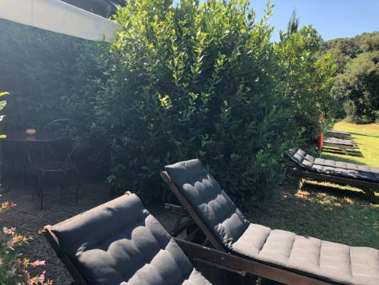 kert: Van egy kis medence melegíthető vízzel, tehát tavasszal és ősszel is meg lehet benne mártózni egy fárasztó nap után. Ez a medence ahogy az apartmanok sem alkalmas kisebb gyerekeknek... Az autókat a fák alatti parkolóban lehet hagyni, van kinti grill is. A tüzifát a parkoló mellett tárolják.