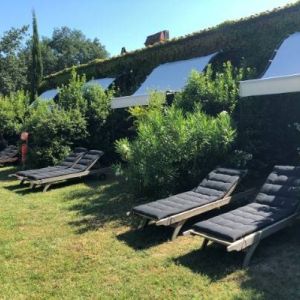 Az 'újabb' épület egy hosszúkás, földszintes kőépület az erdei tisztáson, amiben 5 apartman van, egymás után sorban. Hasonló beosztásúak és két oldalról is van ajtajuk, nagy üveges ajtó elöl és hátul hátsóbejárat a kertbe, sövénnyel elválasztva, kinti asztalokkal, de van napernyő, napágy is. Az autókat a fák alatti parkolóban lehet hagyni, van kinti grill is. Az erdőben több kijelölt turistaútvonal is van amin sétákat lehet tenni. A kertben egy kis medence de ahogy az apartmanok ez sem alkalmas kisebb gyerekeknek lubickolásra...