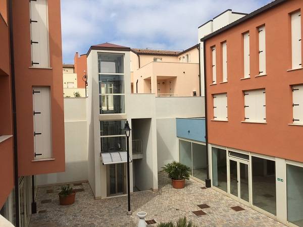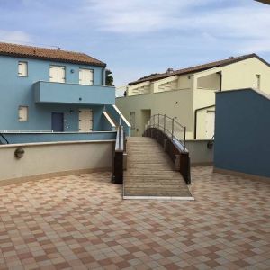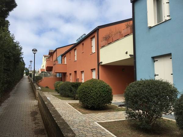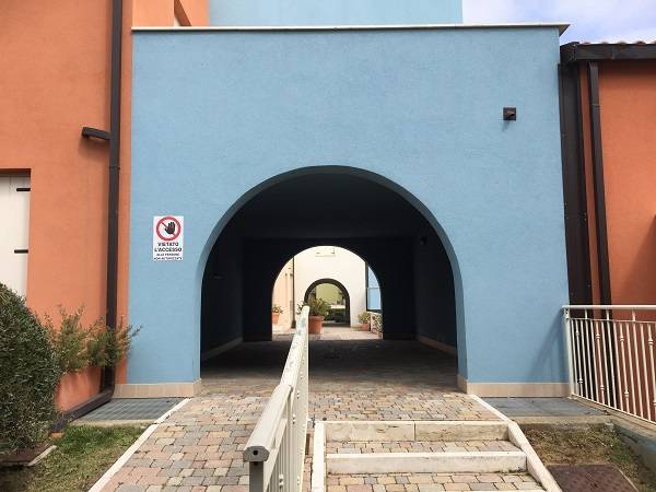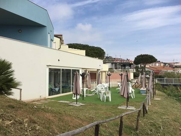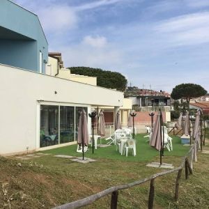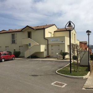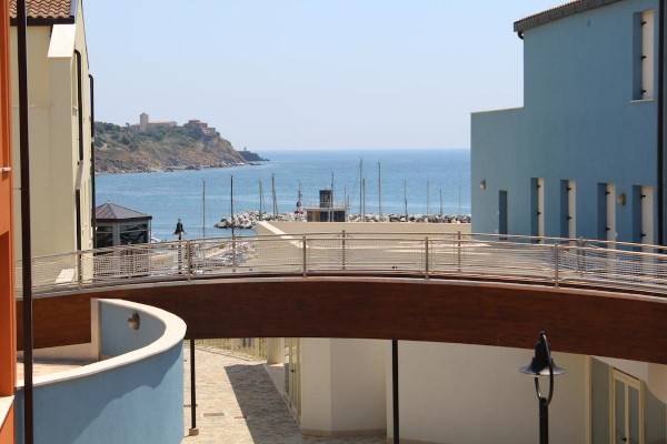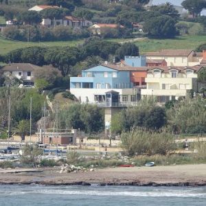 Az épületegyüttes élénk színű falai jól mutatnak a tenger kékje mellett, a lenti kikötőben ringatozó hajók fehér vitorlái és a pálmák, kúszónövények zöldje mellett. Az épület több szintes mert egy lankára épült, U alakú és a középen lévő zárt udvarra is néz sok terasz, ablak. A liftek és lépcsők segítik a partra lejutást ahol van egy étterem is kilátással ami reggel-ebéd és vacsora időben is nyitva van. Az épület alagsorában 2 szinten is zárt parkoló van ahova beállhatnak az apartmanház vendégei. A recepcio minden nap délelött és délután is nyitva van a bejáratnál és itt lehet foglalni motorcsónakot a közeli Baratti öbölbe, bicikliket és erdei lovaglásra is be lehet fizetni. Aki át akar menni Elbára annak foglalnak helyet a kompra kedvezménnyel- pár nappal előre kell szólni. Az apartmanház udvarán lévő helységek nincsenek még kiadva, a wellness részleg sem műküdik de a medence (kicsi de mély) június 1től van nyitva. Alig 50méterre a recepciotól a sarkon áll meg a busz ami 5 perc alatt bevisz Piombino belvárosába de egy parti úton is be lehet gyalogolni hiszen alig 2 km-re van. Az apartmanház mögötti domb tetején 10 perces sétára van egy csillagvizsgáló ahonnan fantasztikus a panoráma is.
