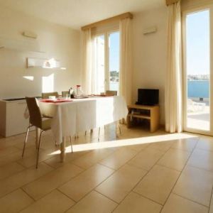 - egyhálós apartman 2+2főre, a nappali részen van egy kihúzható dívány, konyhapult, étkezőrész, aztán egy hálószoba franciággyal meg egy fürdő zuhannyal. Szinte mindegyiknek van terasza vagy udvari asztala kinti evéshez. Ebből is van tengerre néző vagy olyan ami a tenger felöli oldalon van amik drágábbak.