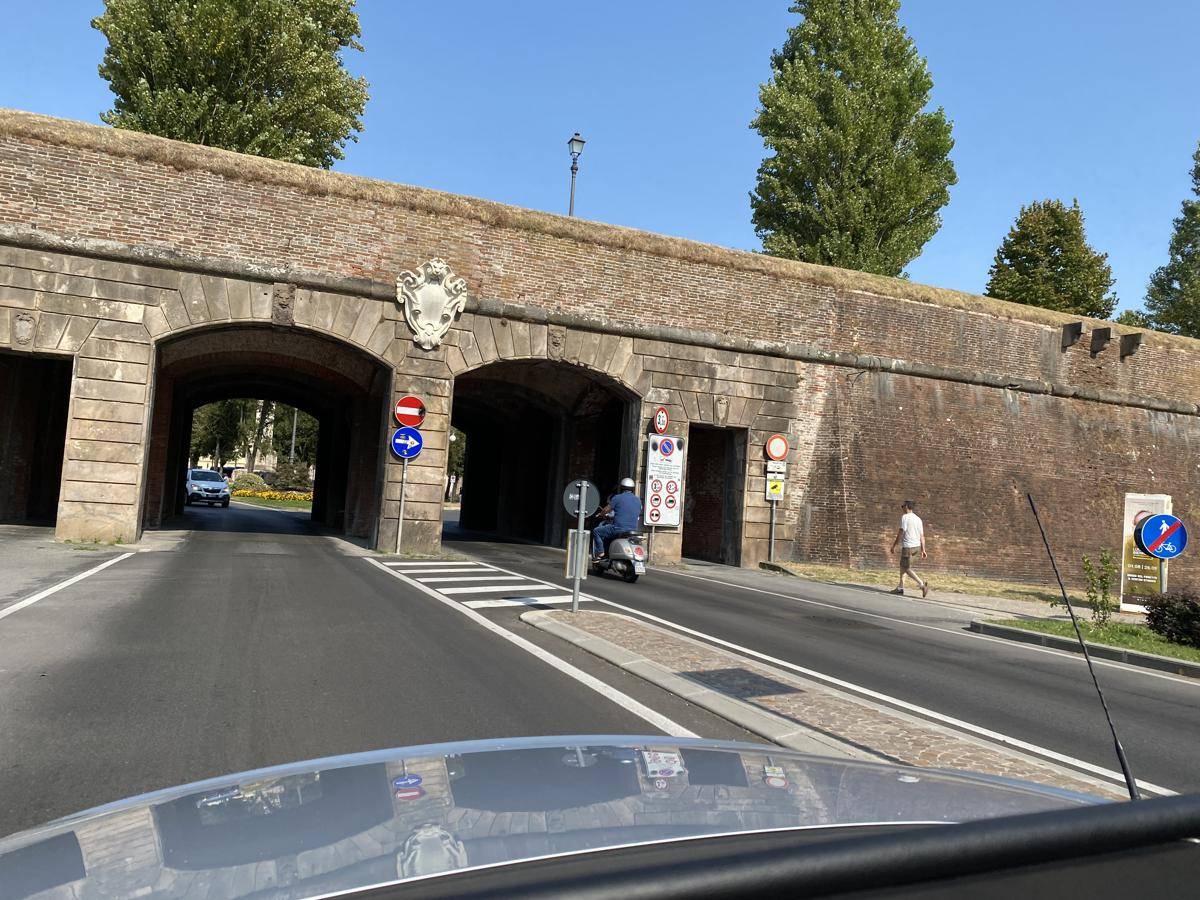 A város sokkal nagyobb, mint a könyvek és térkép alapján gondoltam. A belvárost teljesen körülvevő várfal a XVI-XVII. században épült, de most kevésbé ijesztő, mert fákkal ütették be a falon vezető út széleit. A vizesárok lassan feltöltődött és most gyönyörű zöld gyep van egy széles sávban körben ahol sétálni lehet akár a kutyával, focizni vagy leheveredni a fák árnyékában. A teljes épségben megmaradt 4,2 kmes falon 6 kapu van és 12 bástya, ezzel a második helyen van Europában a ciprusi főváros, Nicosia mögött. Az építése több mint 100 évig tartott és az 1600-as évek közepére lett készen, alapvetően a firenzei Nagyhercegség miatt kezdtek neki de végül nem került sor soha nyílt támadásra. Az 1812-es árvíz során azonban jól megállta a helyét mert a kapukat kellett csak eltorlaszolni és a víz nem tört be a városba. Az autóval nem szabad a várfalon behajtani szinte sehol (csak a helyi lakosoknak), de vannak parkolók minden kapu mellett kívül-belül. Bent biciklikölcsönzők is vannak, ahol akár tandemet vagy elektromos biciklit is lehet bérelni. Jelenleg a fal úgy működik mint egy külön intézmény amely a két középkori tornyot és a botanikus kertet is összevontan kezeli ( lásd lejjebb), érdemes benézni a weboldalukra mert sok rendezvényt is találhattok a nyári időszakban, klikk ide.