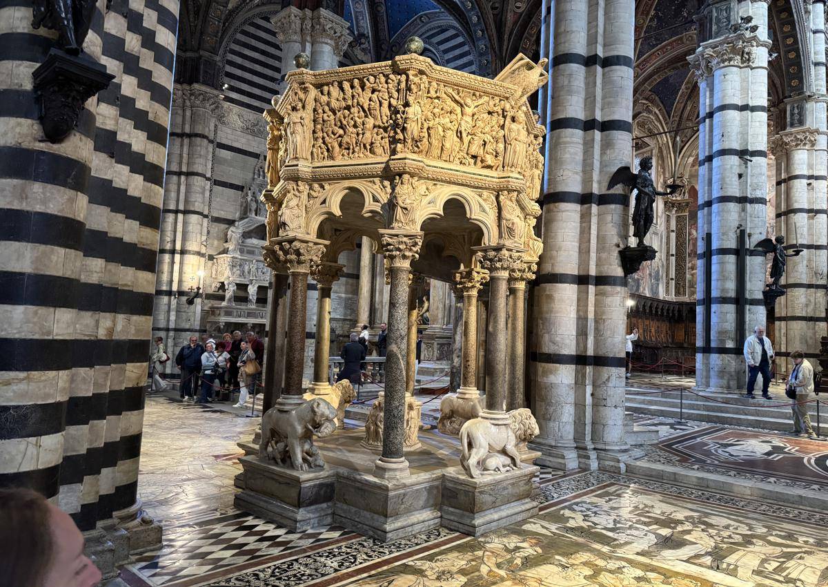 A gyönyörű gót katedrális szerintem a legszebb Toszkánában, pedig a mezőny elég erős hiszen ott van Firenze és Pisa is.... 1179-ben szentelték fel III. Sándor sienai pápa jelenlétében, de a munka még körülbelül két évszázadon át folytatódott. Giovanni Pisano a 13. század végén még a homlokzaton dolgozott, a harangtorony csak 1313-ban készült el, az egész építmény bővítése pedig 1317-ben kezdődött.