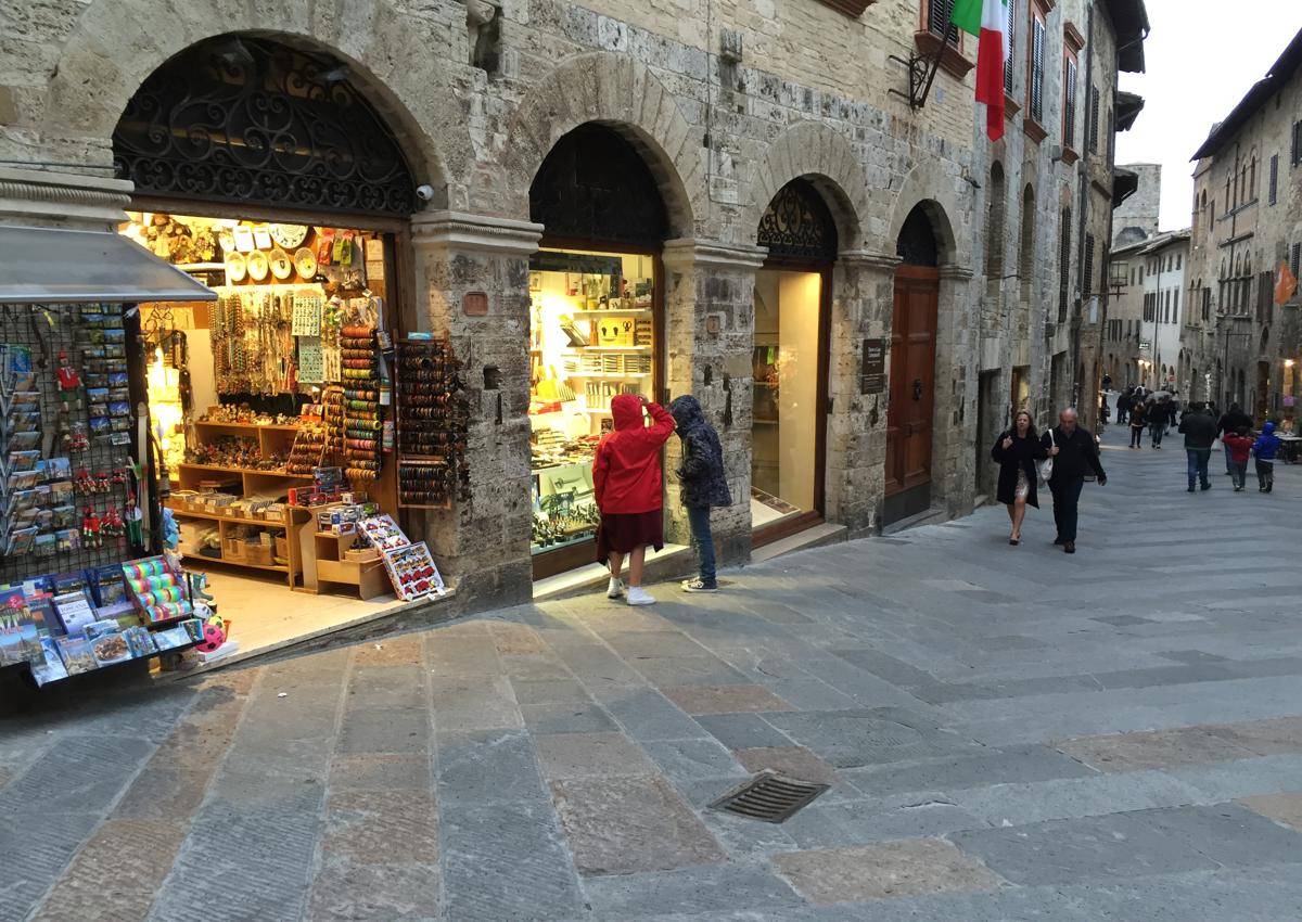 San Gimignano manapság csak a turisták hangjától zajos, a városkát ugyanis egyre kevesebben lakják de annál nagyobb a tömeg napközben. Bár olyan itt, mintha visszacsöppentünk volna fél évezredet a múltba, rengeteg üzlet csábítja vásárlásra és kostolásra az ide látogatókat.