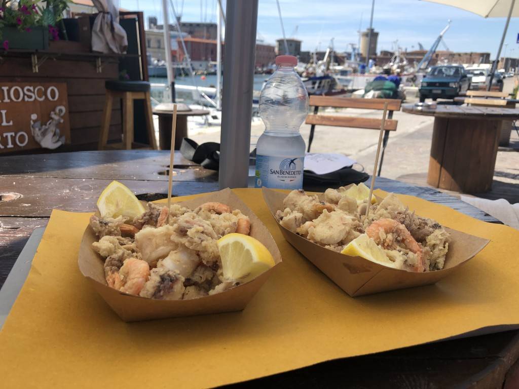A helyi specialitás a cacciucco livornese vagyis a livornoi halászlé ami többféle halból és tengeri herkenytűből készül paradicsomosan - mivel nagy mennyiségben érdemes főzni és elég sokaig tart nem mindenhol és mindig lehet ilyet enni. Aztán persze rengeteg halas étterem van ahol homárt vagy rákokat, osztrigát vagy kagylós tésztát ehettek. Livornoban 55 (cinqueecinque) a neve annak a szendvicsnek amiben a cecina vagyis csicseriborsóból készült lepény van. Maga a lepény ligur eredetű de az hogy egy paninoba teszik itteni invencio, és a neve arra utal hogy anno 5 lira volt a panino és 5 euronyi a csicseriborsolepény-szelet amit beletettek. A helyi szokás szerint most már van olyan változat amiben pl egy marinált padlizsánszelet is van és italként egy spuma bionda illik hozzá. A halászok kedvenc itala a Ponche alla livornese ami egy alkoholos kávé: a gyomorkeserű ízű puncsos italba cukrot, narancsdarabot tesznek és frissen készült kávét.