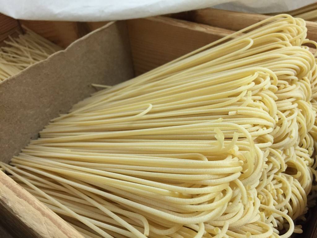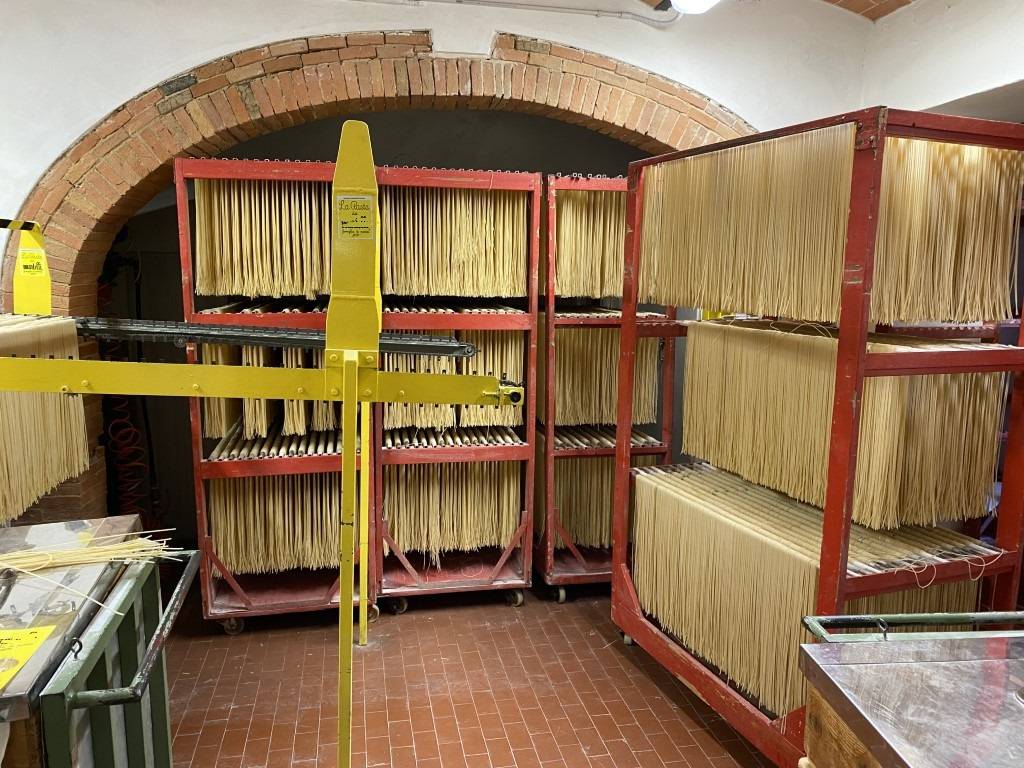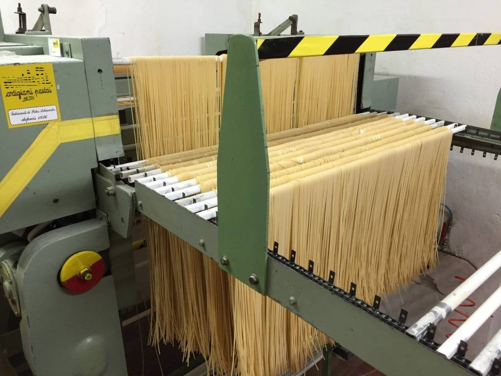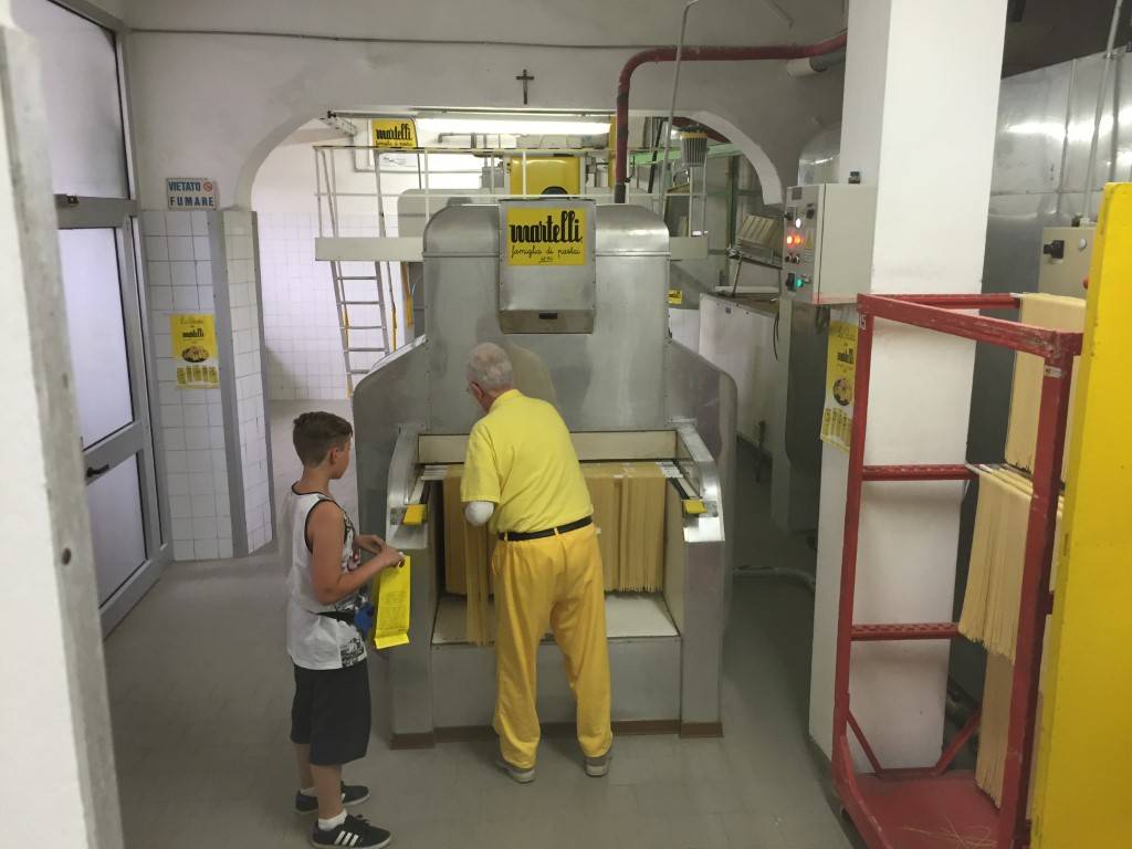 Az olasz tésztának megannyi formája létezik de ami a legfontosabb különbség az a liszt és a szárítás ami nagyon eltérő egy ipari és egy házi tészta esetén. Olaszországban grano duro lisztből szabad tésztát készíteni de nem akarom előre elmesélni a lényeget hiszen majd ott megmutatom. Ez a kis családi cég már majd 90 éve foglalkozik szárasztészta gyártással, jelenleg 5 féle formátumban és rikítóan sárga papírzacskókban árulják őket a szomszéd boltban. Itt nem kapunk kostolót mert ugye a száraz tésztával mit is kezdenénk. A kis falu is nagyon hangulatos egyébként, a házak között kiemelkedik a régi vár amit szintén meg lehet nézni ha valaki korábban érkezik és van rácsos kapu, bástyák, börtön meg isteni házi fagyi .