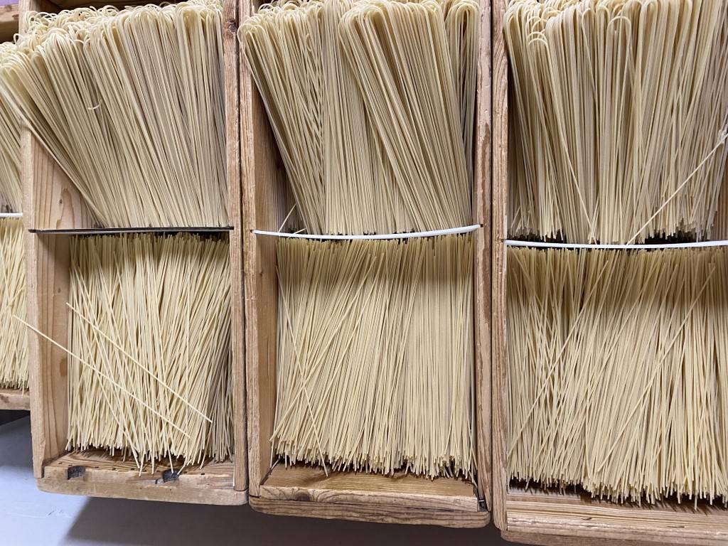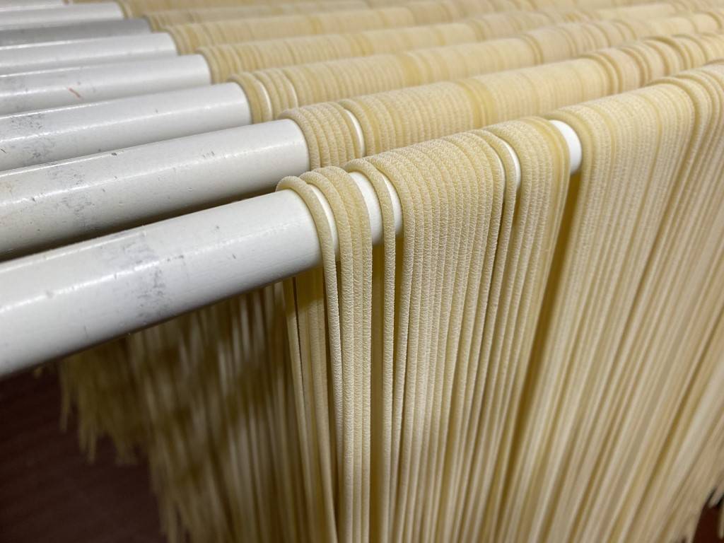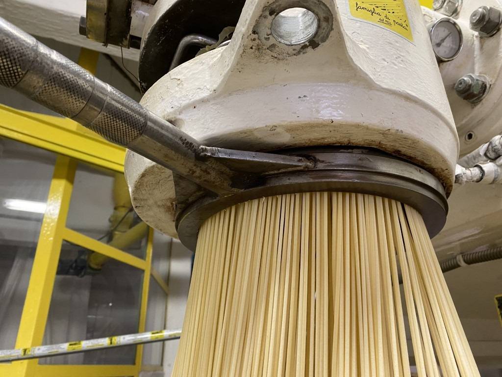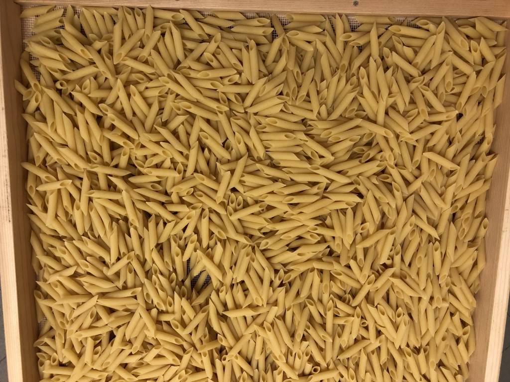 Az olasz tésztának megannyi formája létezik de ami a legfontosabb különbség az a liszt és a szárítás ami nagyon eltérő egy ipari és egy házi tészta esetén. Olaszországban grano duro lisztből szabad tésztát készíteni de nem akarom előre elmesélni a lényeget hiszen majd ott megmutatom. Ez a kis családi cég már majd 90 éve foglalkozik szárasztészta gyártással, jelenleg 5 féle formátumban és rikítóan sárga papírzacskókban árulják őket a szomszéd boltban. Itt nem kapunk kostolót mert ugye a száraz tésztával mit is kezdenénk. A kis falu is nagyon hangulatos egyébként, a házak között kiemelkedik a régi vár amit szintén meg lehet nézni ha valaki korábban érkezik és van rácsos kapu, bástyák, börtön meg isteni házi fagyi .