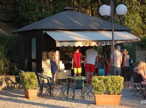 A bejáratnál a főépületben található a recepcio elöl, kisbolt oldalt és a kávézó/étterem hátul terasszal. Itt a hátsó kertben van egy fagyisbungalow is ami este is nyitva van. A nagy épület mögött van az animációnak egy szabadtári színház ahol félkörívben lehet űlni a színpad körül az esti előadásoknál. Mellette van egy nagy focipálya és egy nagyobb játszótér és egy homokos strandröplabda pálya (2017). Ezen a részen vannak a panorámás medencék is, pontosan 3: hátul az új medence amőba formájú, kis szigettel, csúzdával, előtte a nagyobb medence két részből áll, a lenti nagyobb a fenti a gyerekmedence aminek fűtik a vizét. A medencéket körbevevő részen vannak napernyők napággyal (nyáron fizetős). A kemping területén létezik egy gyalogösvény is amit bármikor végig lehet járni, a neve percorso della vita. Ezen kívül minden héten szerveznek gyalogos kirándulásokat melyeknek hossza lehet 5-30 km, például elkirándulhattok gyalog Vincibe az olajfaligetek között (meg vissza). A recepcion lehet bérelni bicikliket is több kategoriában és kismotort is. A környező utakon rengetegen bicikliznek pedig nincsen kiépített út nekik de a profik szeretik ez az átlag 7%os emelkedőt és a majd 300 méters szintkülönbséget.