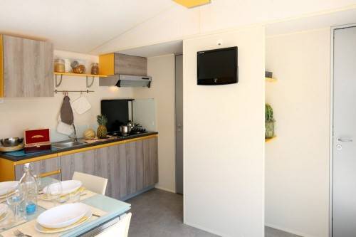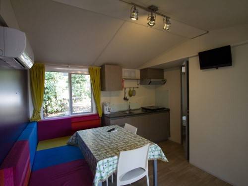 A mobilhomeokból is több fajta va meg bungalow, safari sátor is. Mindegyiknek van konyhája hűtővel, mikroval, sat tv, ágynemű és huzatok, törölközők, fürdőszoba, zuhannyal, kint kerti asztaluk és 2 napágy. A kutyáknak tudnak biztosítani kutyaházat a kertben/teraszon de nem mindegyik kategoriánál engedik meg.