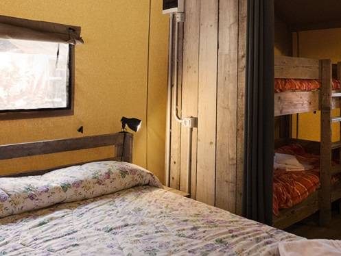 - A 6os safarisátor ami valójában egy luxussátor: fapadló és lelválasztófalak, fabútorok de sátorszövet a teteje és oldala. Ezek belső tere 35m2 és nagy teraszuk (15m2), A fürdőszoba hotelhez hasonló, a franciágyas hálóból nyílik a másik háló amiben van egy emeletes ágy van és egyszermélyes ágy de nincsen ajtó közöttük. A konyhában rendes nagy hűtő van mélyhűtővel, van kávégép is és a tv nagy lcd 20as a fürdőben maszírozós zuhanyfülke.