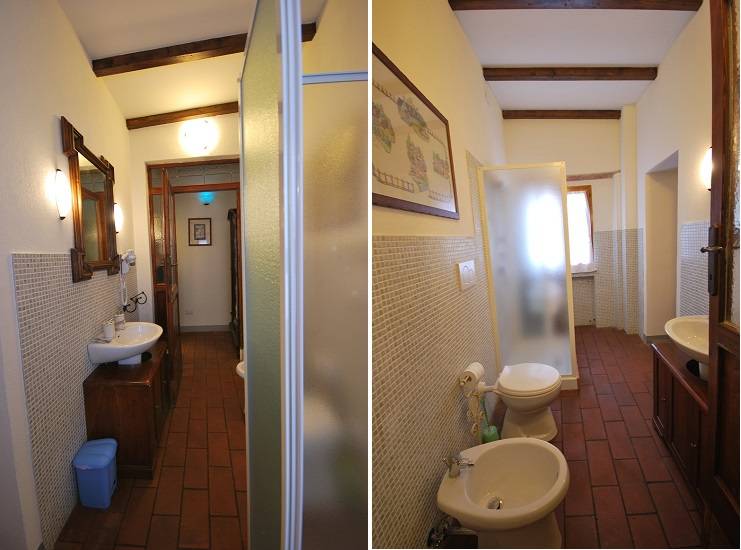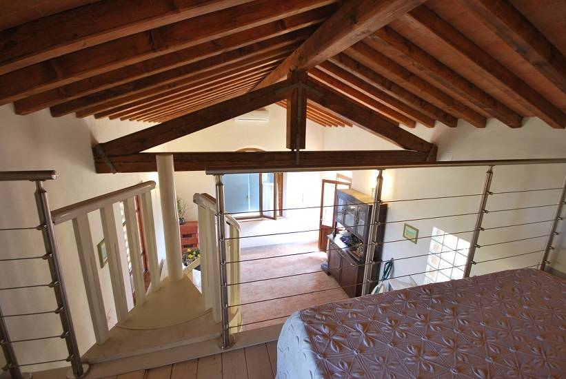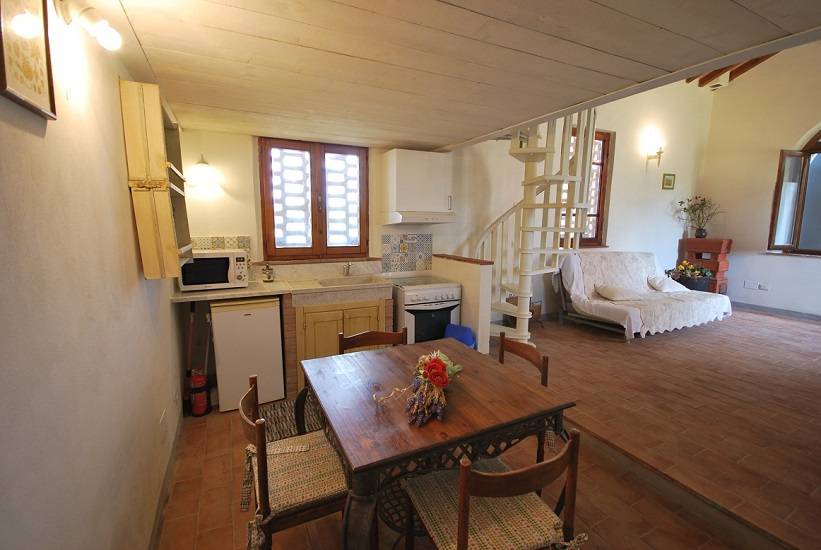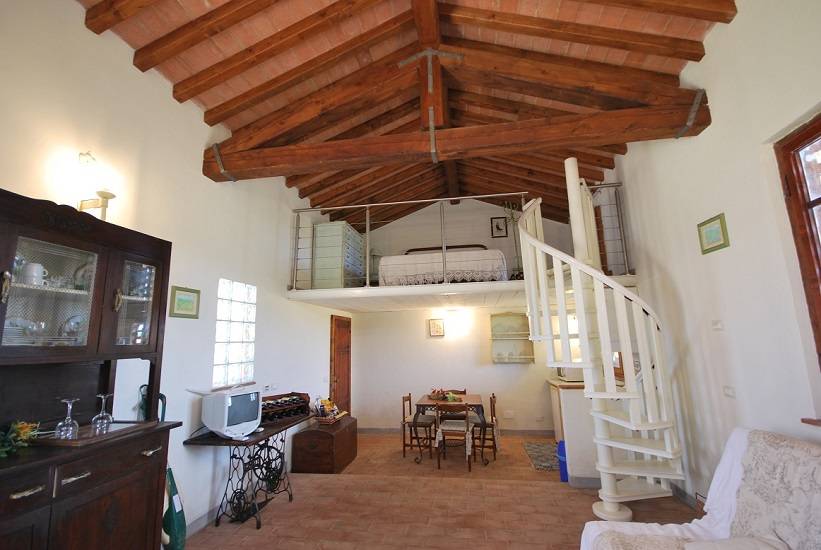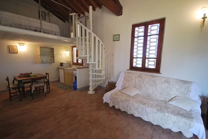 A nagy épület melletti régi Fienile vagyis magtározó külön apartmanként funkcionál: egy nagy alapterületű egylégteres studio valójában. A nappali részben van egy Tv, egy kihúzható dupla dívány, a gallérián van a franciágy 2 főre és alaltta a konyha rész hűtővel, étkezőasztallal, mellette a fürdőszoba nyílik zuhannyal. Ez az apartman légkondicionált is, amiért külön kell fizetni ha valaki kéri ezt a szoláltatást (lsd lejjebb). Ez a kedvencem, érthetően.
