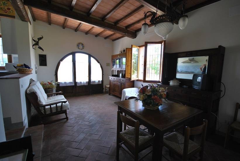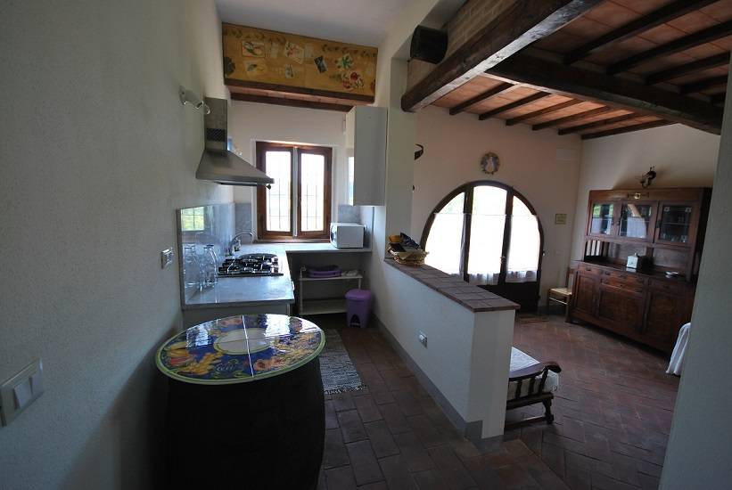 Egy félig leaszfaltozott mellékút vezet a házhoz mely szőlő (Bocelli birtok) és olajfa sorok között fut, egymástól nagyobb távolságra van rajta pár ház de pont annyira hogy egyik sem zavarja a másikat. A tulajdonos házaspár Massimo és Maria Pisa mellett élnek a tengerparton és a nagymama házát adják ki most több éve az ide érkezőknek. A házat szőlősorok veszik körbe és saját boruk is van meg van két farm a szomszédban ahol friss tejet és sajtokat is lehet venni. A ház másik felének felújítását abbahagyták, tehát ez üresen áll (tulaja egy firenzei család). Az épület első részében két lakás van, lent és fent, meg az oldalsó kis épület egy harmadik apartmannal. A háznál szinte véget ér az út, pár gazdasági épület van még erre (szénatároló).
