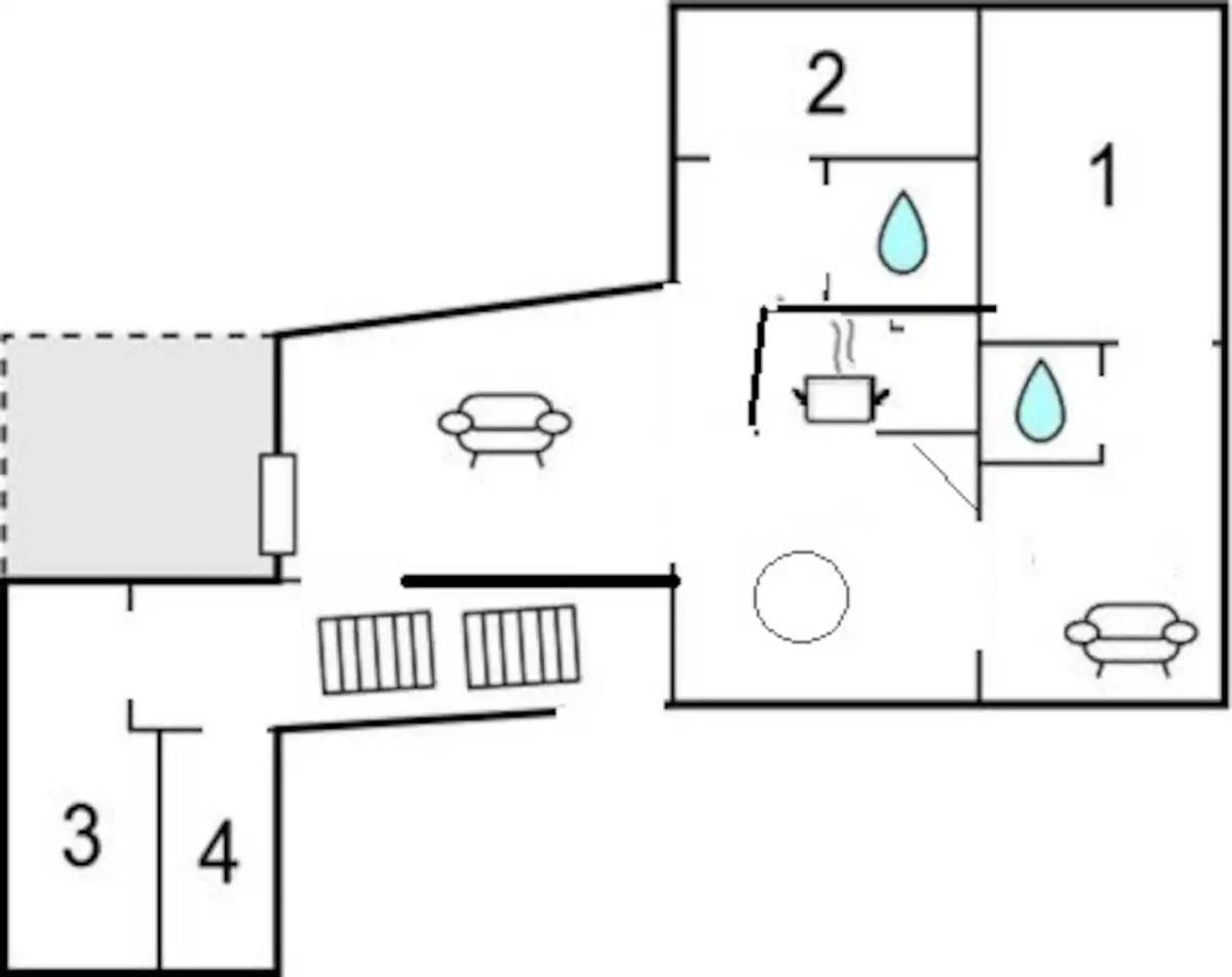 A kisebbik Altana apartmanban van egy nappali rész nagy étkezőasztallal, kandalóval, Tv -vel és egy kihúzható dívánnyal. Innen nyílik az árkádos hosszúkás terasz egy kisebb kinti asztallal reggeli kávéhoz. A nappaliból nyílik a kis előtér amin balra van a konyha, spájz és jobbra a fürdőszoba, szemben pedig a hálószoba. A konyhában van nagy hűtő, mikro és kávéfőző, kenyérpirító és minden ami kell a főzéshez, tálaláshoz. A fürdőben van mosdókagyló, wc, bidet és egy zuhany. A hálóban egy nagy ágy éjjeli szekrényekkel, fiókos és akasztós szekrény. Lépcsőn lehet felmenni ide is mert ez is emeleti. 2026-ban légkondi is lesz