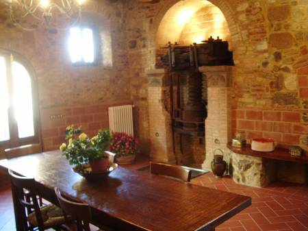 A nagyobb, felújított apartman a Frantoio nevet kapta, ami az olajprés olaszul mert ez egy prés volt már 200 évvel ezelött is. Ezt teljesen újjáépítette hiszen csak a homlokzata maradt épen, 2011-ben lett készen. Két szintes a lakás, rusztikusan berendezett és van egy saját titkos kertje hátul medencével. Van róla egy pár kicsi képem, sajnos évek óta visszajáró vendégek foglalják le ezért szinte soha sem szabad. Ez bent van a kis faluban és egy nagy kertje is van hátul de autóval nem lehet beállni. A földszinten van egy nagy nappali rész, a régi présből megmaradt malomkővel és oldalt a sajtolóval a falban, van egy kisebb fürdőszoba is zuhanyfülkével. Egy nagy étkező rész és konyha is van persze, oldalt kandaló. A medence 9 x 5 méteres, mellette fák alatti árnyas rész és napos terasz a napimádóknak. Az emeleten van egy kisebb nappali rész kihúzható dívánnyal, egy franciaágyas hálószoba (baldachino) meg egy másik két külön ággyal és egy fürdőszoba zuhanyfülkével. Jól felszerelt a lakás, van mosogítógép és mosogép is, sat Tv, az emeleti részben légkondicinálás, internet és kint barbecue meg jacuzzi. És csináltam erről egy videot is , klikk ide Youtube
